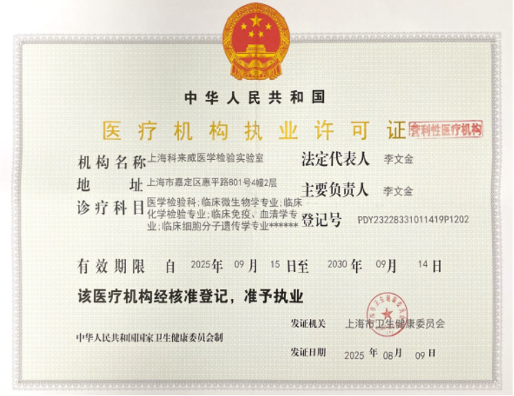 上海科来威医学检验实验室有限公司于2019年11月09日成立。2025年8月份开始由骅澳科技控股,公司经营范围包括:营利性医疗机构,货物或技术进出口(国家禁止或涉及行政审批的货物和技术进出口除外),从事医学技术、生物技术、医疗检验技术领域内的技术开发、技术转让、技术咨询、技术服务(不得从事诊疗活动),医疗咨询(不得从事诊疗活动),健康管理咨询(不得从事诊疗活动),医药中间体(除药品及危险化学品)的销售,企业管理咨询等。